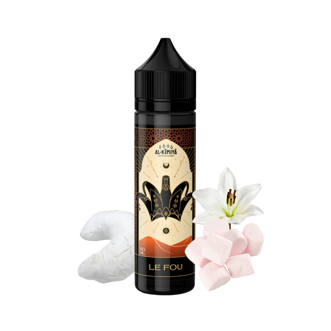 Le Fou d'Al-Kimiya est un e-liquide qui offre une véritable symphonie de saveurs. La corne de gazelle apporte une note pâtissière douce et légèrement sucrée, tandis que la guimauve ajoute une rondeur gourmande et moelleuse. Enfin, la fleur de lys apporte une touche délicate et légèrement florale qui transcende ce mélange pour une vape pleine de surprises et de délicatesse.