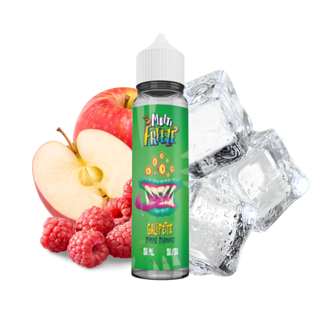 Le Multi Freeze Galipette de Liquidéo, un e-liquide qui s'adresse aux amateurs de saveurs givrées, marie avec brio les notes acidulées de la pomme et de la framboise à une fraîcheur intense.