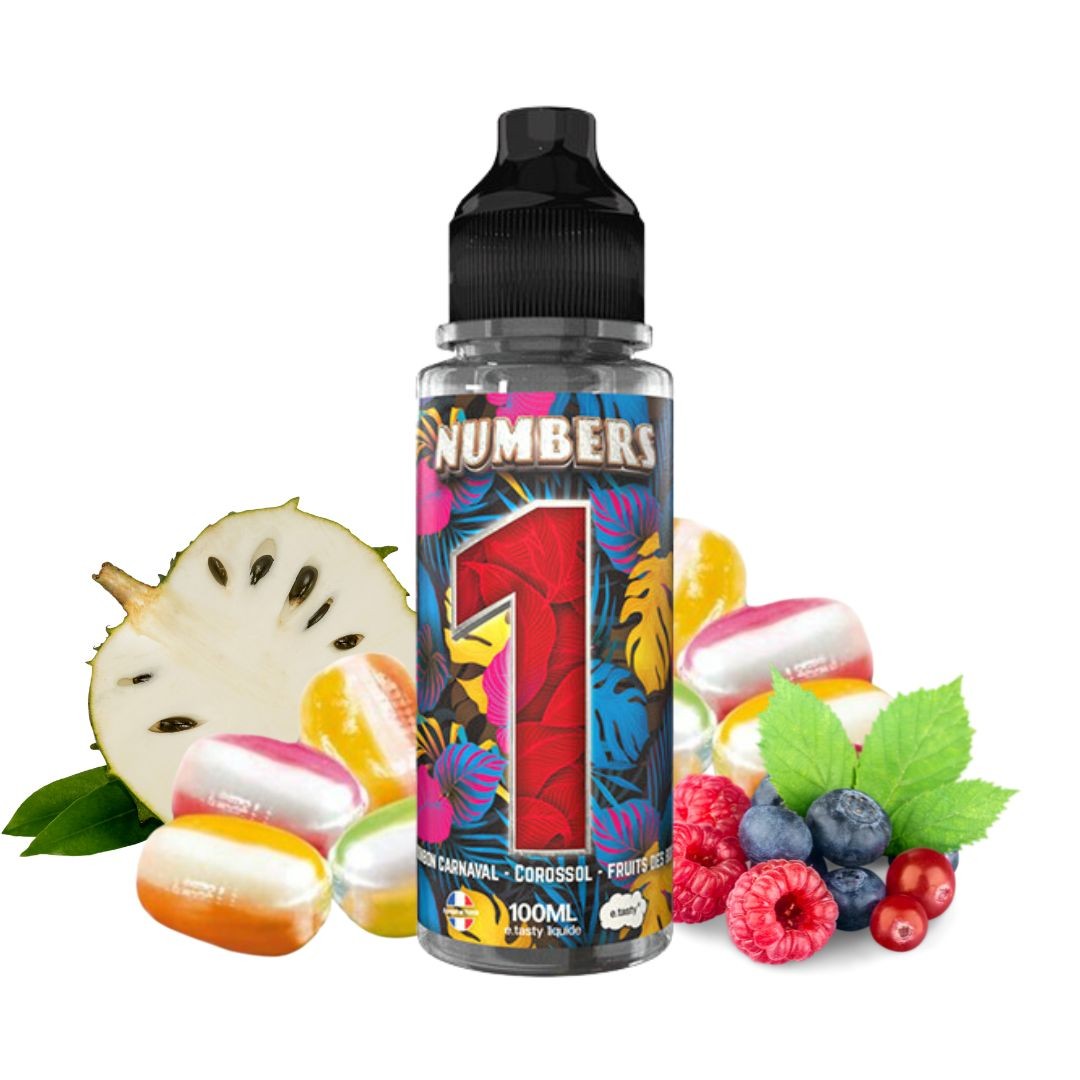 L'e-liquide Numbers 1 d'E.Tasty est une explosion de saveurs dans votre palais. Imaginez un bonbon de carnaval sucré, un corossol exotique et un mélange de fruits des bois, tous réunis dans un e-liquide délicieusement complexe.