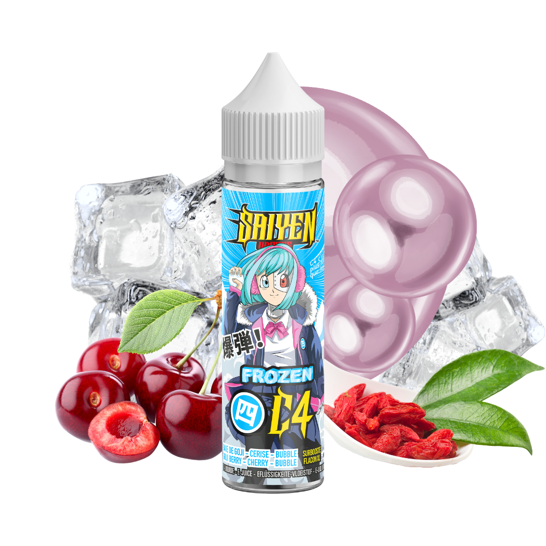 Explosez vos papilles avec l'e-liquide C4 Frozen de Saiyen Vapors. Un mélange détonant de bubble gum, de cerise, de baies de goji et d'une grosse fraîcheur pour une expérience de vape pleine de peps.