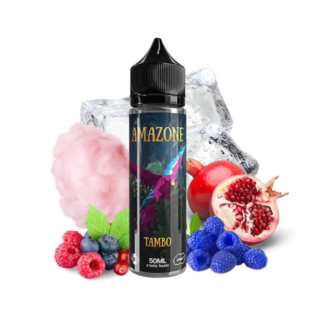 Avec l'e-liquide Amazone Tambo, chaque bouffée est une fête. La douceur nostalgique de la barbe à papa se mêle à la fraîcheur des fruits rouges, de la framboise bleue et de la grenade pour offrir une expérience de vape inoubliable.