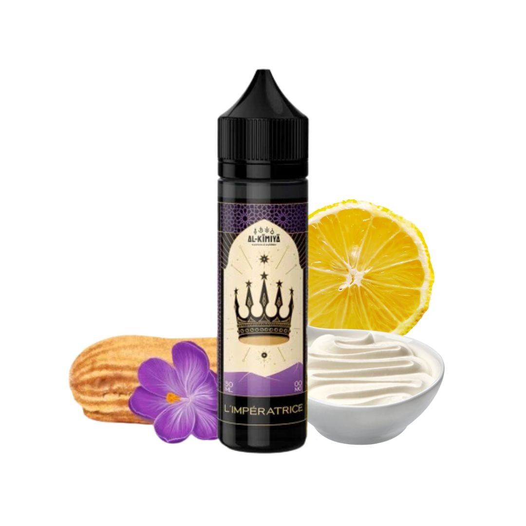 L'e-liquide L'Impératrice d'Al-Kimiya est une création somptueuse qui marie la sophistication à la gourmandise. Inspiré par la noblesse et l'élégance, ce mélange raffiné associe la douceur d'un éclair pâtissier à l'arôme délicat de la violette, le tout rehaussé par une onctueuse crème de citron. C'est une invitation à un voyage gustatif dans un monde où le luxe et la finesse règnent en maîtres.