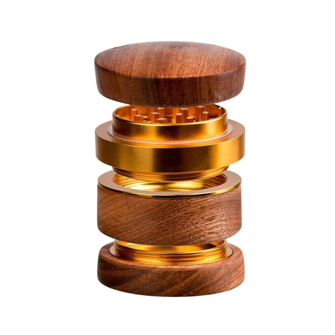 Voici un grinder qui déchire, avec son look ultra classe, mélangeant le métal doré et le bois de rose pour un résultat des plus impressionnants !