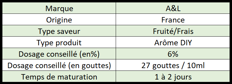 Afin d'être certain d'un rendu aromatique équilibré, il est conseillé de respecter un certain temps de maturation (appelé également steep). Un steep d'1 à 2 jours est suffisant pour ce concentré fruité et frais.