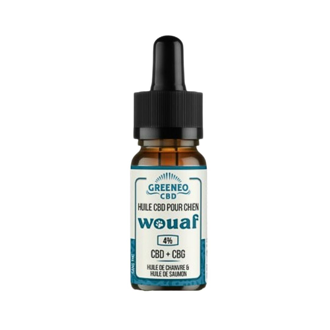 L'huile Waouf CDB+CBG 4% (=400mg) de Greeneo est préparée à partir d’huile de chanvre certifiée biologique et produite en France, et d’huile de saumon choisie pour son appétence par les chiens, c’est une base gourmande et pleine de bienfaits (oméga 3, oméga 6, vitamine E, etc.) qui sert de support aux cannabinoïdes CBD et CBG, au taux le plus juste pour votre animal !