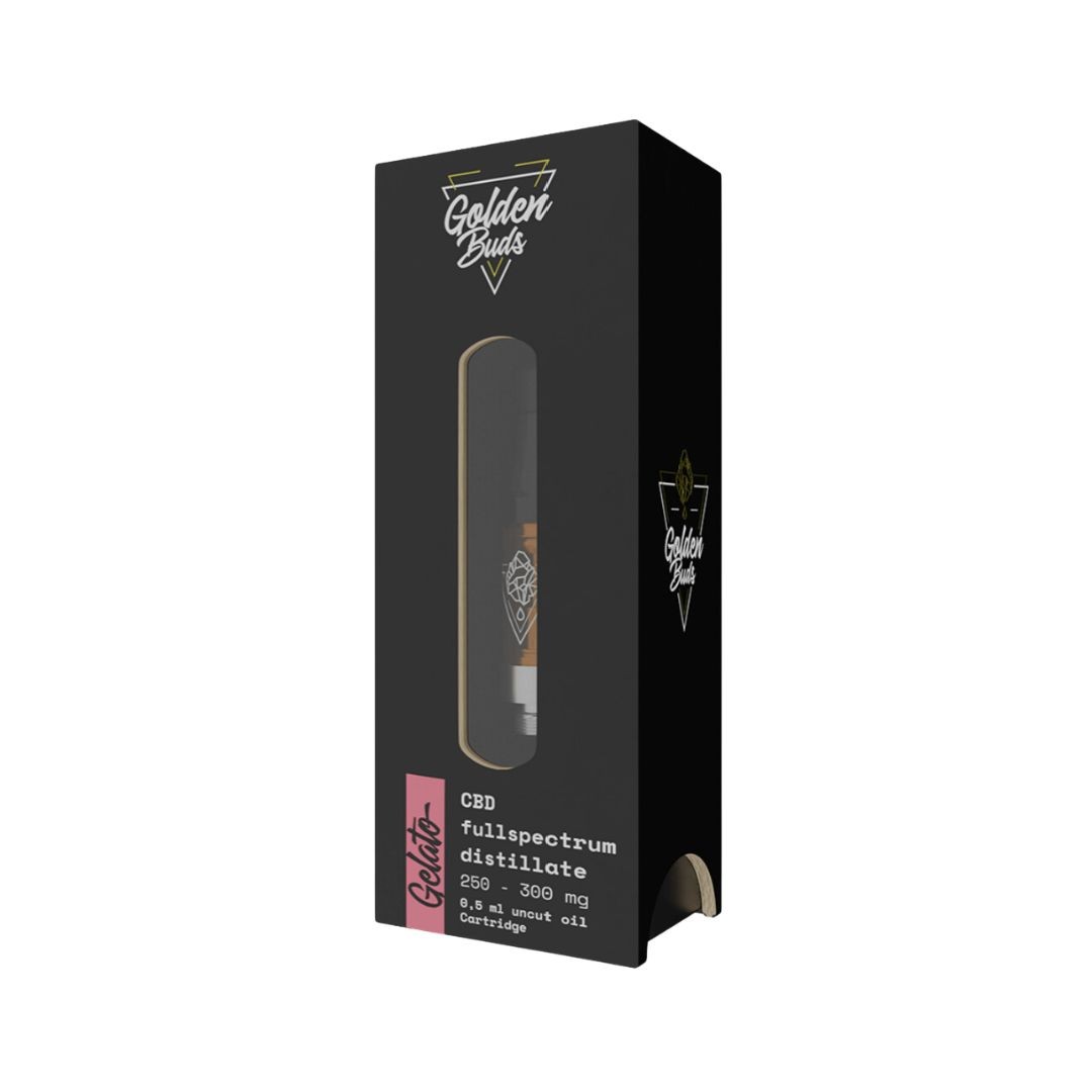 La cartouche de CBD Golden Buds aromatisée Gelato (0,50 ml) contient 300 mg d’huile CBD non coupée de haute qualité.