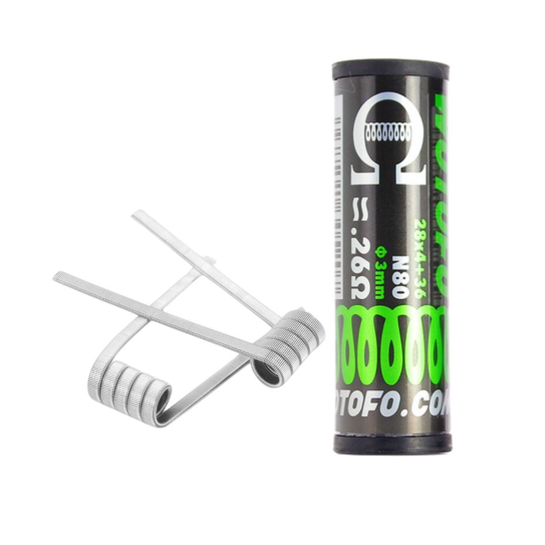 Coils préfabriqués Wotofo – Ni80 - Quad core Fused Clapton - 3mm - 0.26ohm/coil - 10 pièces.
