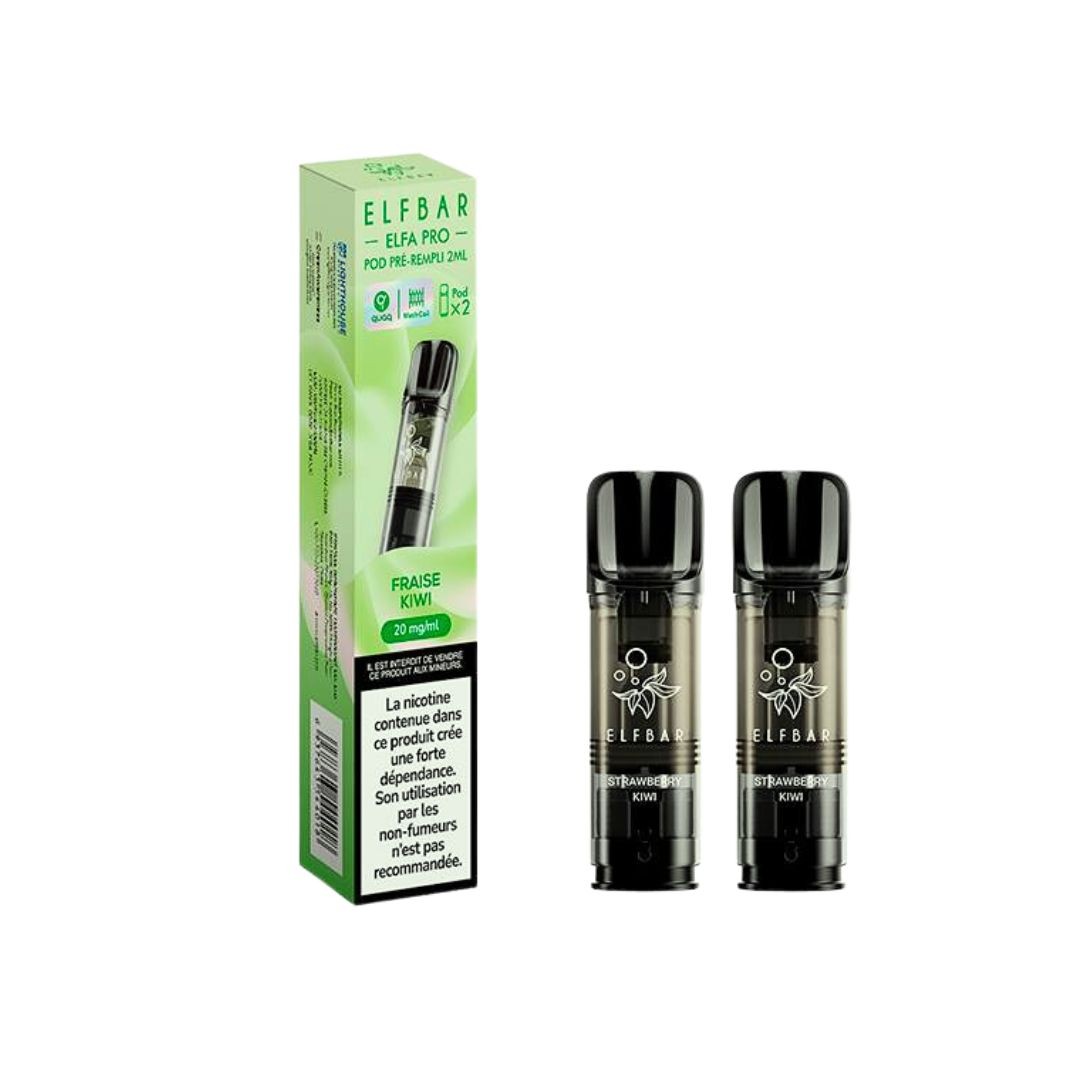 2 cartouches pré-remplies Elfa Pro saveur fraise et kiwi.