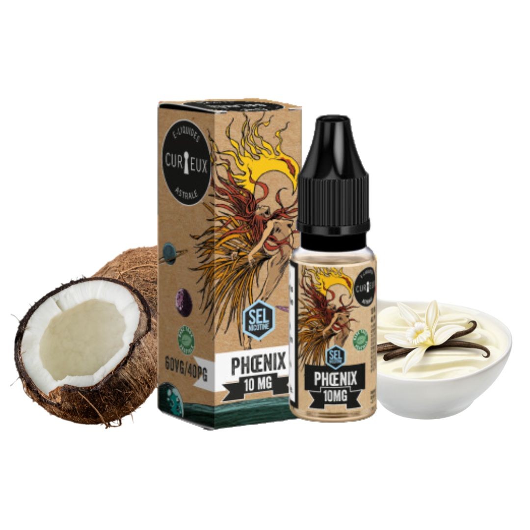 Phoenix est un e-liquide aux sels de nicotine développé par Curieux. Ce mélange exotique de vanille custard et de noix de coco offre une expérience de vapotage douce, crémeuse et tropicale. Grâce à sa teneur en sels de nicotine, Phoenix fournit une satisfaction rapide en nicotine, idéale pour ceux qui cherchent à arrêter de fumer.
